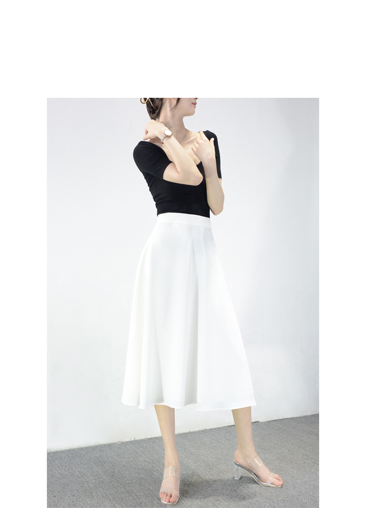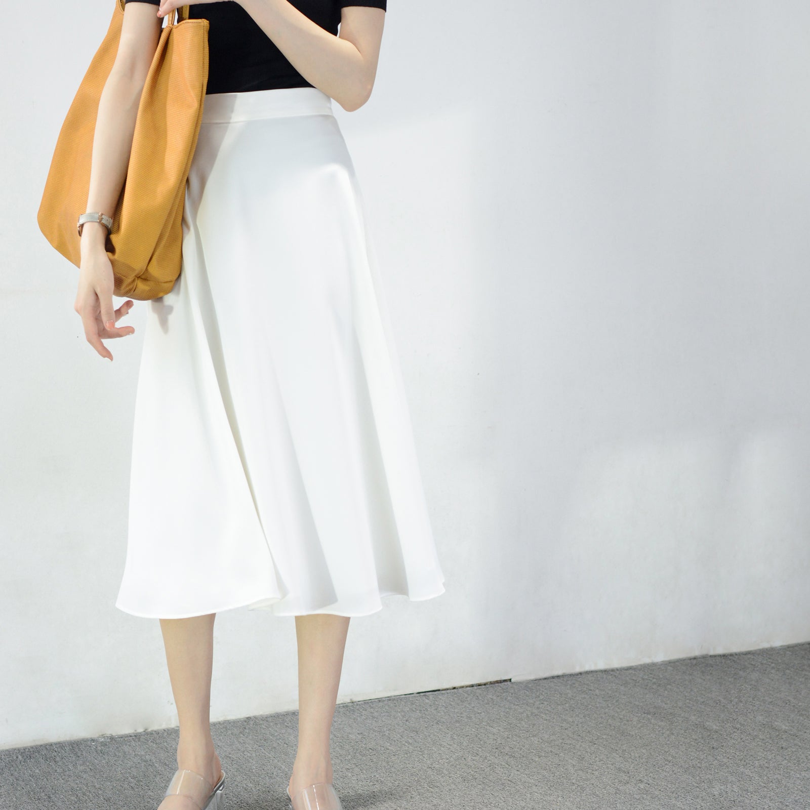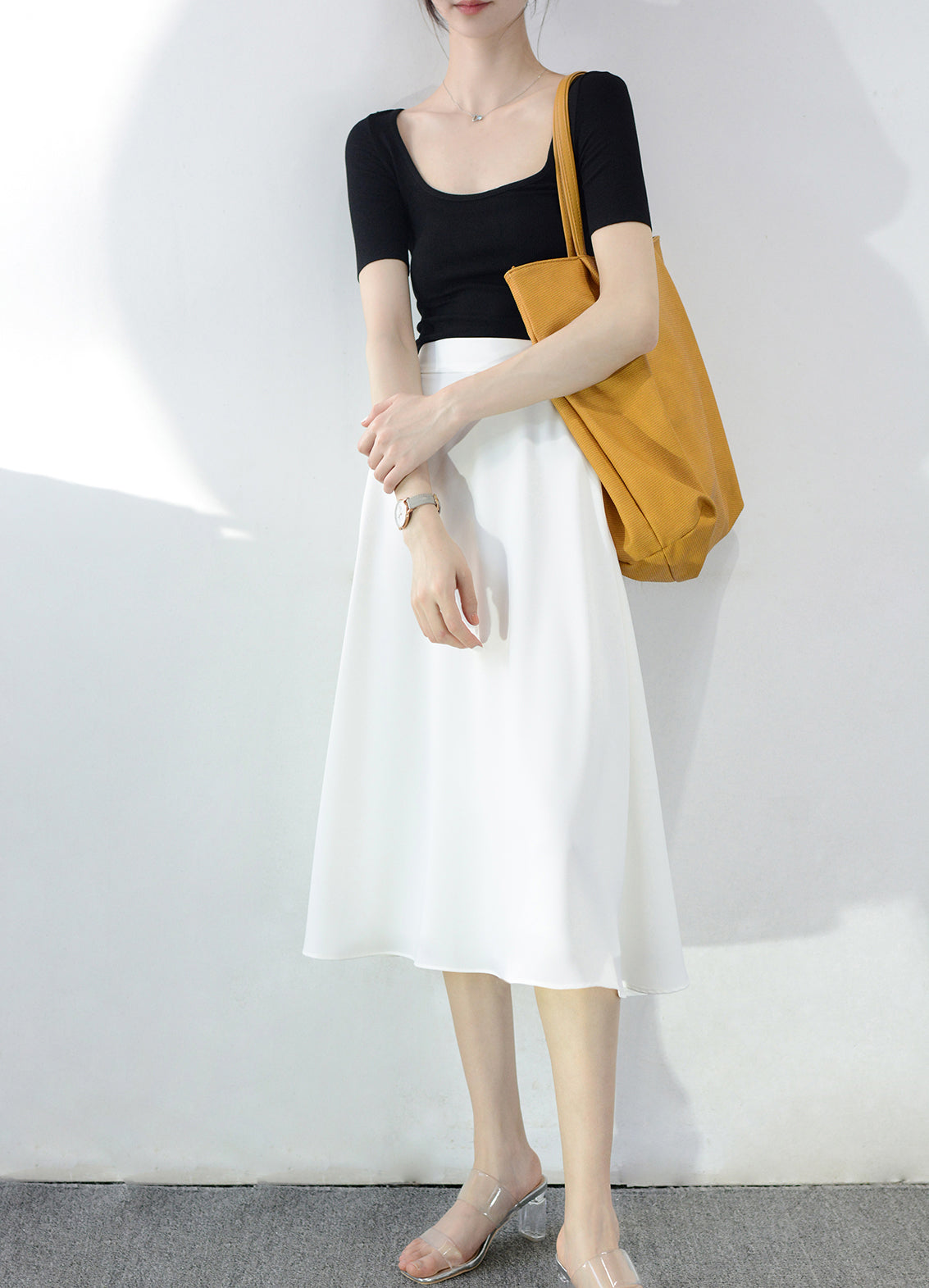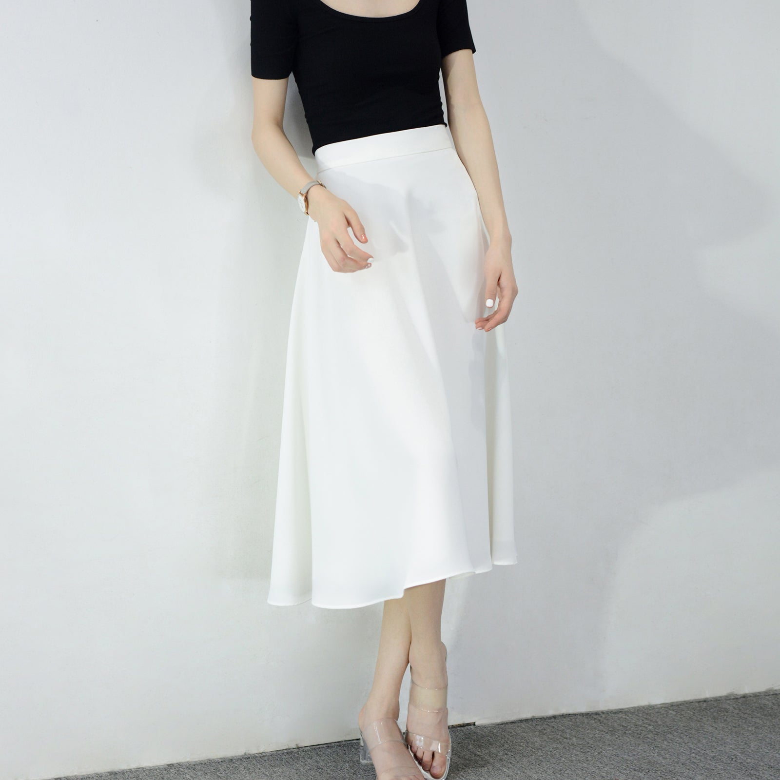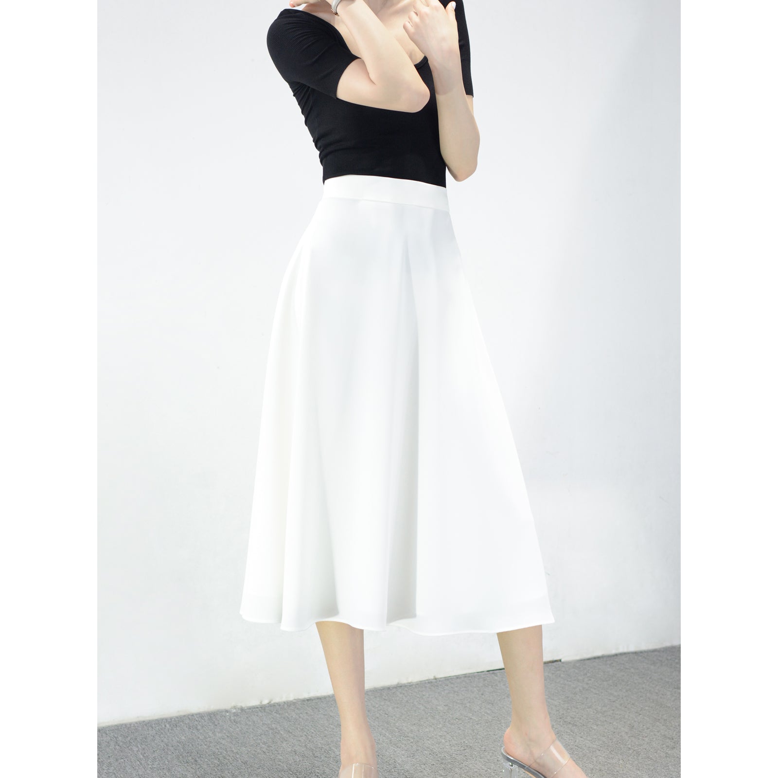 TRR 2021夏半身裙百搭高腰中長裙A字大擺顯瘦 優雅仙女白裙子ins