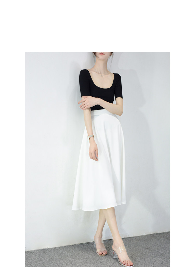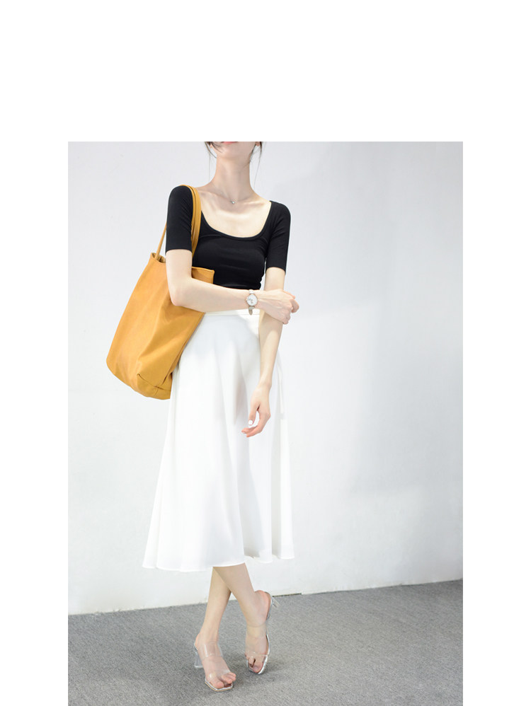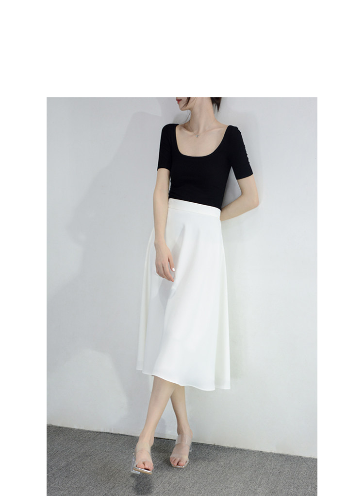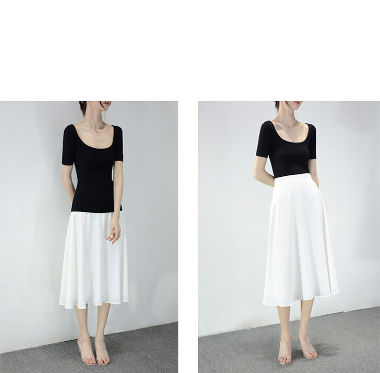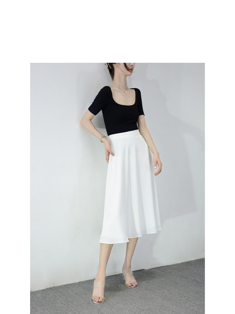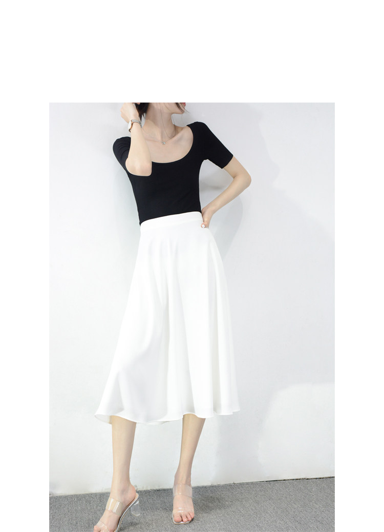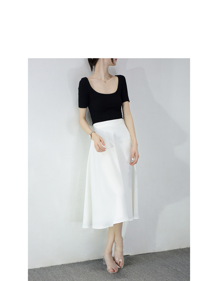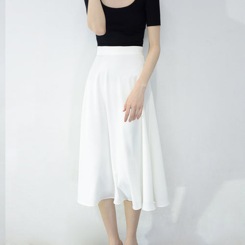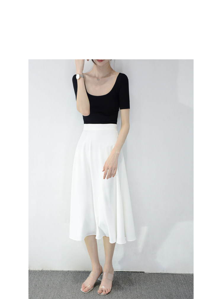 TRR 2021夏半身裙百搭高腰中長裙A字大擺顯瘦 優雅仙女白裙子ins