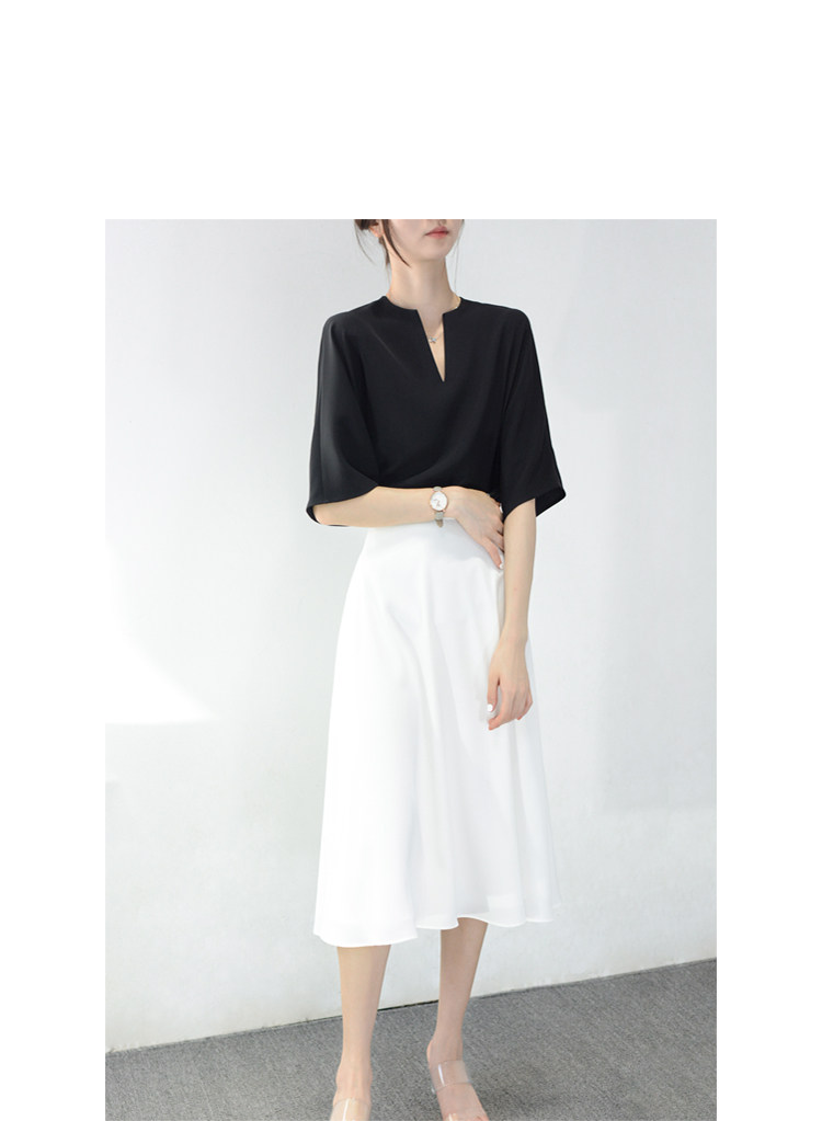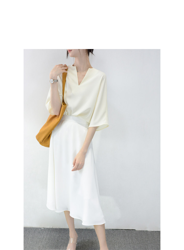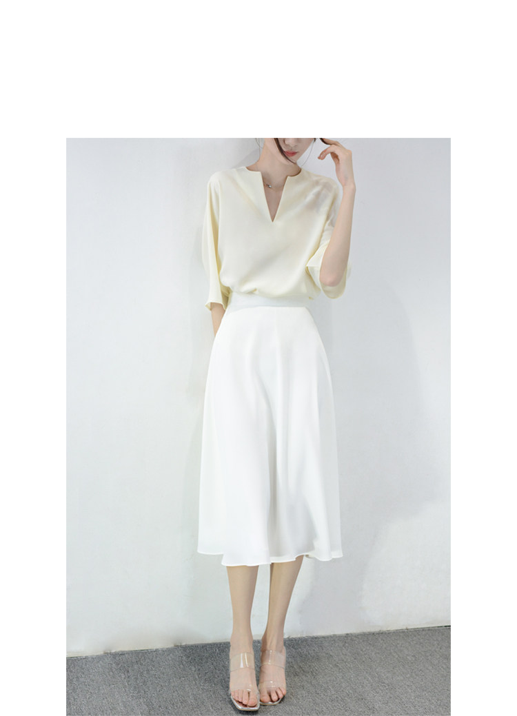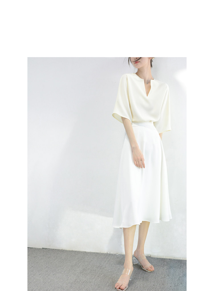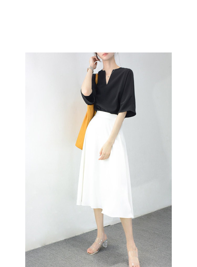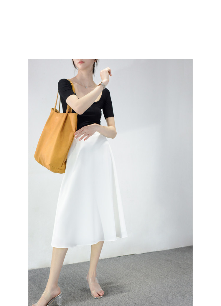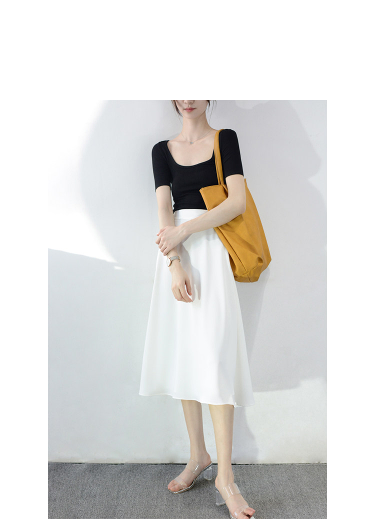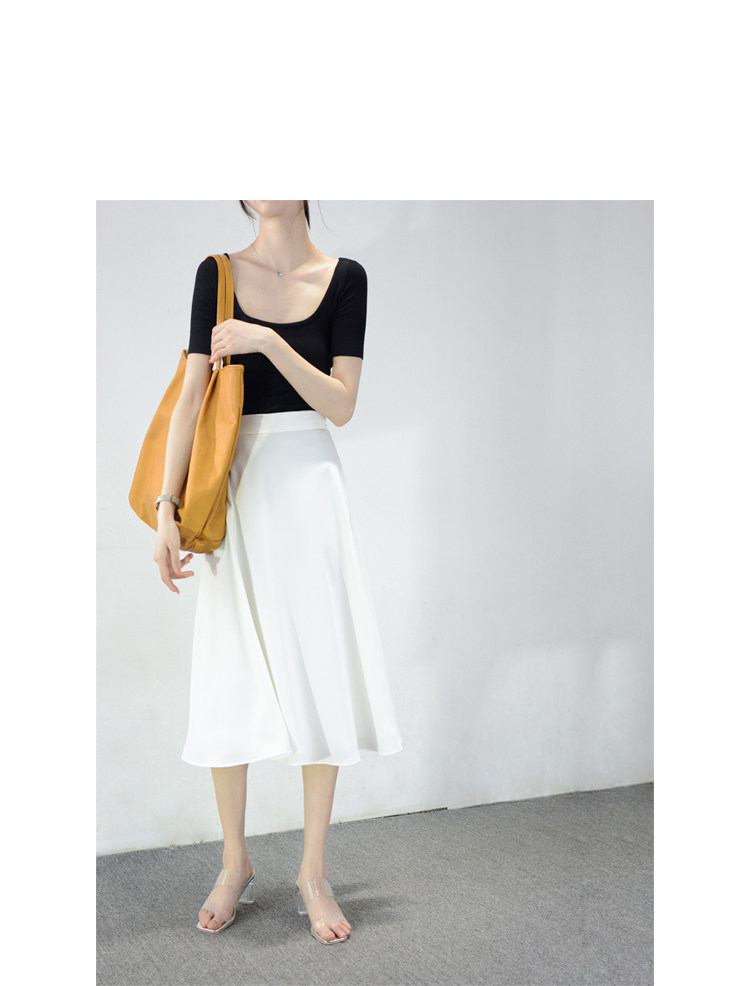 TRR 2021夏半身裙百搭高腰中長裙A字大擺顯瘦 優雅仙女白裙子ins